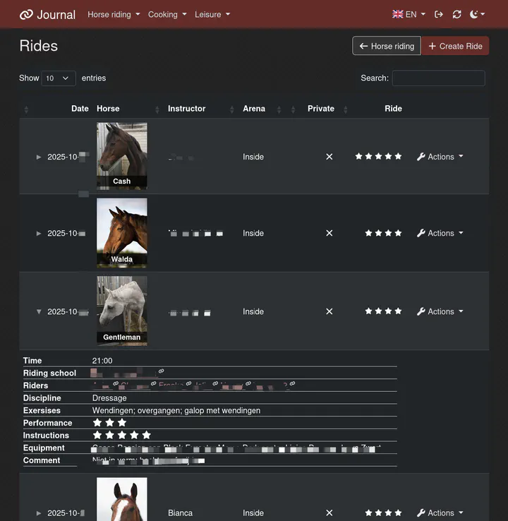 The image above features my personal horse riding journal. This “application” integrates most of Unchained’s features, linking to multiple other applications.